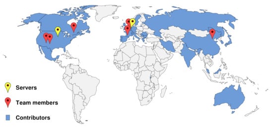 Geographic location of the countries currently contributing to the LXCat project. Please note that this map reflects on the location of direct contributors to the project and not necessarily on the countries from which the data originally came from.