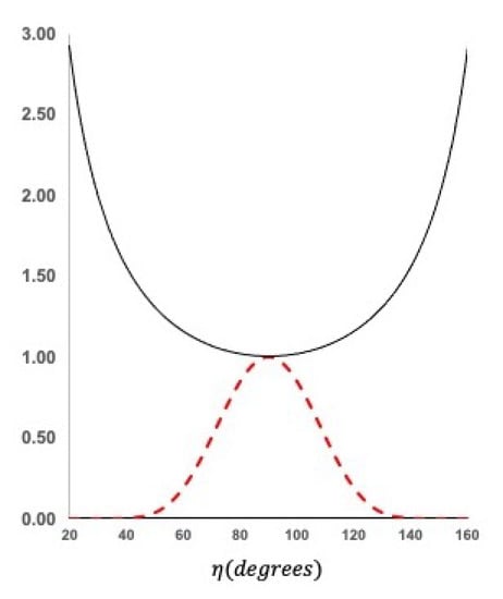The factor tends to give the dominant angular behavior of the TDCS at low energies, and it does correctly force the cross section to go to zero when . However, the overall normalization is lost. To ameliorate this, it is has been proposed [,] to normalize so that it is fixed to 1 when the angle between and is , i.e., when we have a colinear arrangement. A modified version of the factor has been suggested by Ward and Macek []. These authors suggested replacing with