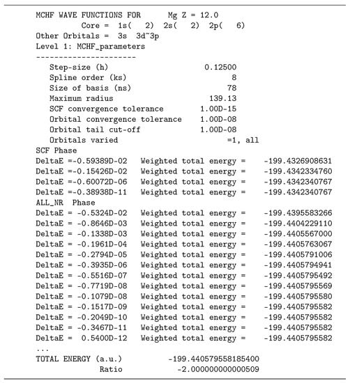 Computer output of a Hartree–Fock calculation for the Mg [Ne] wave function.