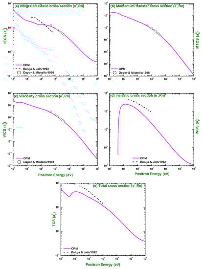 - Baluja, K.L.; Jain, A. Positron scattering from rare gases (He, Ne, Ar, Kr, Xe, and Rn): Total cross sections at intermediate and high energies. Phys. Rev. A 1992, 46, 1279. [Google Scholar] [CrossRef]