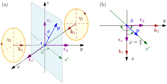 For purely circularly polarized beams, we have , and according to the Figure 1, the polarization vectors can be written as combinations of unit Cartesian basis vectors: