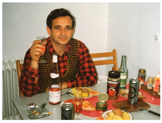 Oleg was always friendly, delicate, modest, and never refused scientific assistance to me, even with potential competition on some topics. He was a heavy smoker all the years I remember him. He told me that without smoking he couldn’t think properly. I don’t know how much it hindered him in different places of his work. He liked to watch soccer and tennis, combining it with drinking good beer. We’ve had all sorts of stories. Once we shared a 3-bedroom apartment in Freiburg, and he was the only guest on my 40th birthday (see Figure 1). At another time we invited the couples Werner and Marilot Mehlhorn and Volker and Annemaria Schmidt for a return visit. Before that, we noticed that they prefer the local Fürstenberg beer. Oleg bought a box of Fürstenberg. However, at the first sips, Volker made a puzzled face. It turned out that it was the non-alcoholic version! Oleg was terribly embarrassed and said: “Unbelievable, I chose the most expensive version of Fürstenberg!” The existence of non-alcoholic beers had not been known to us before.