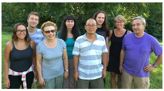 A group outing in 2017. From left to right with their countries of origin in parentheses: Samantha Fonseca (Brazil), Nicolas Douguet (France), Tatyana Zatsarinny (Ukraine), Raquel Pinto lvarez (Spain), Kedong Wang (China), Luis Fernndez-Menchero (Spain), Teresa Bartschat (Canada), and Oleg Zatsarinny (Ukraine). Photo from private collection of Klaus Bartschat.