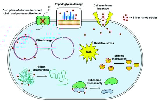 Overview of the antimicrobial action mechanisms of silver NPs (used with permission from [135]).