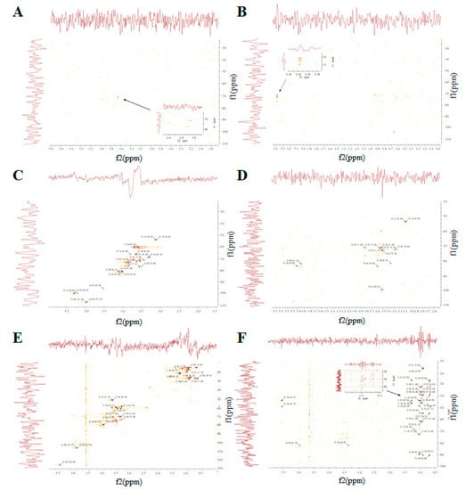 Two-dimensional NMR spectra of GUPS. (A) HSQC spectrum of GUPS-I; (B) HMBC spectrum of GUPS-I; (C) HSQC spectrum of GUPS-II; (D) HMBC spectrum of GUPS-II; (E) HSQC spectrum of GUPS-III; (F) HMBC spectrum of GUPS-III.