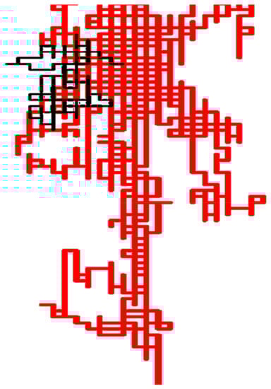 Pseudo-folding of the Cry 1Ab C-terminal domain sequence (in black) into the bacteriocins 2D-HP space (in red). This figure was taken from the reference [].