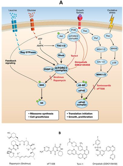 Tomivosertib (eFT508) was obtained from Selleck (Houston, TX, USA, Sirolimus (rapamycin) was obtained from LCL (Woburn, MA, USA), Torin1 was obtained from Cayman Chemicals (Ann Arbor, MI, USA) and omipalisib (GSK2126458) was obtained from MedKoo Sciences (Morrisville, NC, USA). Stocks were made in DMSO (Sigma-Aldrich, St. Louis, MO, USA) 1–100 mM and stored in aliquots at −20 °C, prior to appropriate dilution for inhibition studies. All other reagents were of the highest grade possible.