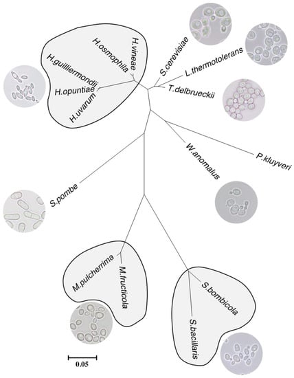 - Kurtzman, C.P.; Robnett, C.J. Phylogenetic relationships among yeasts of the “Saccharomyces complex” determined from multigene sequence analyses. FEMS Yeast Res. 2003, 3, 417–432. [Google Scholar] [CrossRef]