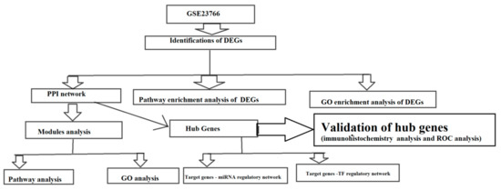 - Bi, D.; Ning, H.; Liu, S.; Que, X.; Ding, K. Gene expression patterns combined with network analysis identify hub genes associated with bladder cancer. Comput. Biol. Chem. 2015, 56, 71–83. [Google Scholar] [CrossRef] [PubMed]
