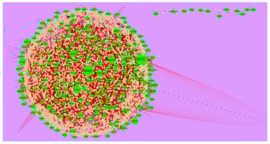 - Shannon, P.; Markiel, A.; Ozier, O.; Baliga, N.S.; Wang, J.T.; Ramage, D.; Amin, N.; Schwikowski, B.; Ideker, T. Cytoscape: A software environment for integrated models of biomolecular interaction networks. Genome Res. 2003, 3, 2498–2504. [Google Scholar] [CrossRef] [PubMed]