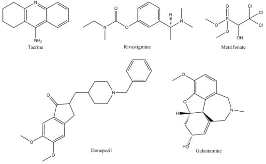 According to the cholinergic theory, the development of Alzheimer’s disease symptoms is mainly related to structural alterations in cholinergic synapses, loss of specific subtypes of acetylcholine (ACh) receptors, the death of ACh-generating neurons, and, consequently, the deterioration of cholinergic neurotransmission. These issues lead to a relative accumulation of the ACh-hydrolyzing enzyme, acetylcholinesterase (AChE) [].