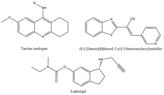 The molecular structures of synthetic analogues: Tacrine analogues, (E)-2(benzo[d]thiazol-2-yl)-3-heteroarylacrylonitriles and ladostigil.