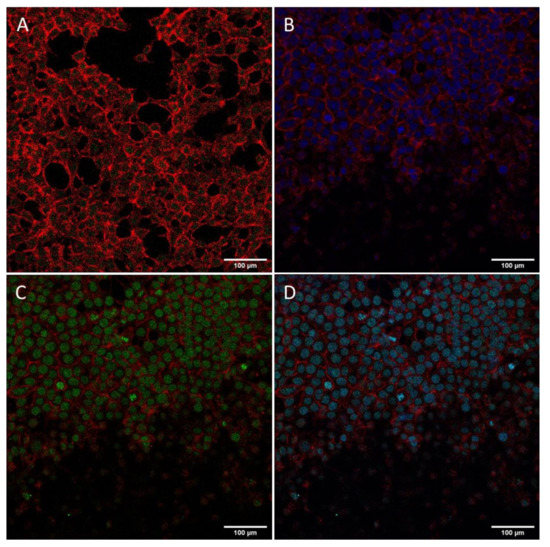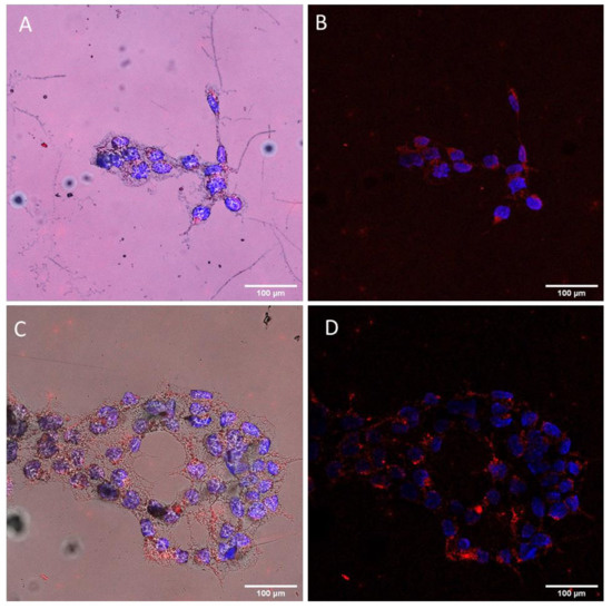 78]. The confocal observations of cells treated with the pre-stained SV40-pGL3 plasmid show that it entered the nucleus in a period of 4 h, as observed from the blue/green overlay on the nuclear area.