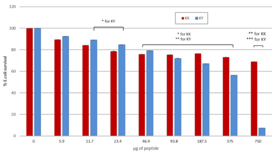 14]. It is plausible to hypothesize that the antibacterial activity of the two peptides reported here could follow the same mechanism as that reported in Reference [