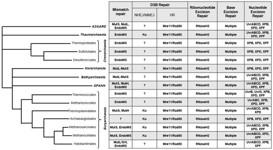 Marshall, C.J.; Santangelo, T.J. Archaeal DNA Repair Mechanisms. Biomolecules 2020, 10, 1472. https://doi.org/10.3390/biom10111472