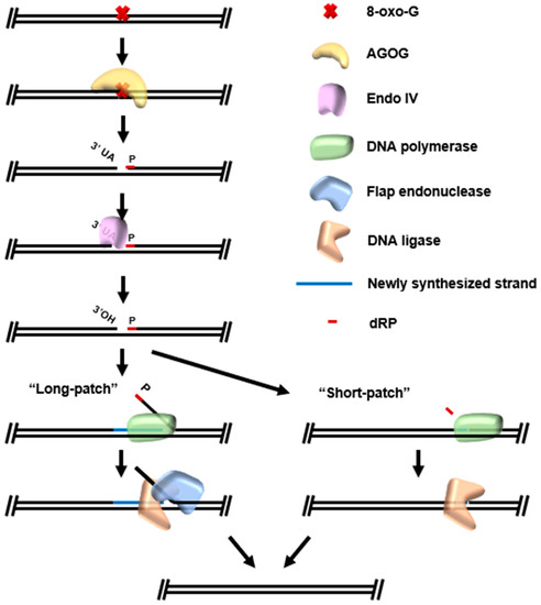 - Wallace, S.S. Base excision repair: A critical player in many games. DNA Repair 2014, 19, 14–26. [Google Scholar] [CrossRef] [PubMed]