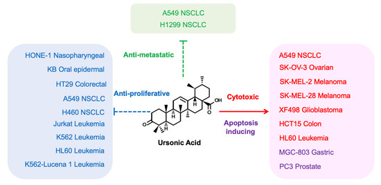 - Kashyap, D.; Tuli, H.S.; Sharma, A.K. Ursolic acid (UA): A metabolite with promising therapeutic potential. Life Sci. 2016, 146, 201–213. [Google Scholar] [CrossRef] [PubMed]