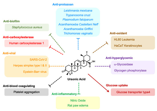 - Wozniak, L.; Skapska, S.; Marszalek, K. Ursolic Acid--A Pentacyclic Triterpenoid with a Wide Spectrum of Pharmacological Activities. Molecules 2015, 20, 20614–20641. [Google Scholar] [CrossRef]