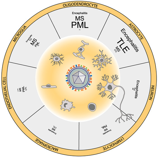 - Esposito, L.; Drexler, J.F.; Braganza, O.; Doberentz, E.; Grote, A.; Widman, G.; Drosten, C.; Eis-Hübinger, A.M.; Schoch, S.; Elger, C.E.; et al. Large-scale analysis of viral nucleic acid spectrum in temporal lobe epilepsy biopsies. Epilepsia 2015, 56, 234–243. [Google Scholar] [CrossRef]