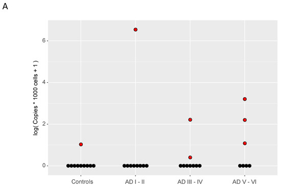 - Allnutt, M.A.; Johnson, K.; Bennett, D.A.; Connor, S.M.; Troncoso, J.C.; Pletnikova, O.; Albert, M.S.; Resnick, S.M.; Scholz, S.W.; De Jager, P.L.; et al. Human Herpesvirus 6 Detection in Alzheimer’s Disease Cases and Controls across Multiple Cohorts. Neuron 2020. [Google Scholar] [CrossRef] [PubMed]