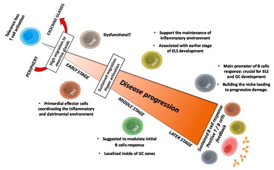 Thus, regarding all those aforementioned aspects, here, we discuss the current knowledge of T cells subset involvement in SS, focusing on their properties for the infiltration of exocrine glands and their pathologic mechanisms, as well as the novel emerging factors making them potential therapeutic targets for the treatment of SS.