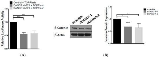 3.4. LncRNA-DANCR Regulates Wnt/β-Catenin Signaling