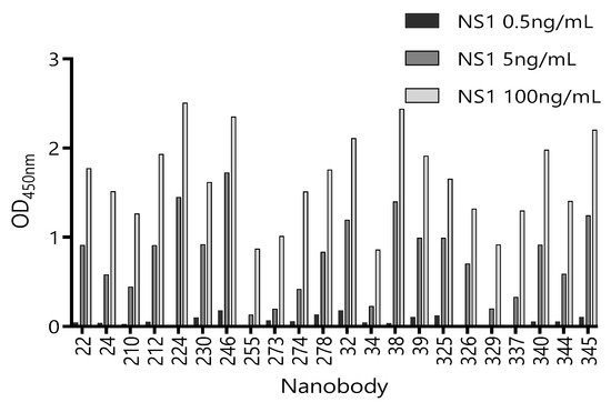 3.1. To Promote a Broad Representation of the NS1 Epitopes, Different Antigen Immobilization Strategies Were Used to Pan the Nb Library