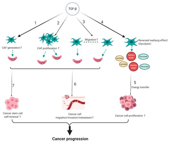- Guido, C.; Whitaker-Menezes, D.; Capparelli, C.; Balliet, R.; Lin, Z.; Pestell, R.G.; Howell, A.; Aquila, S.; Andò, S.; Martinez-Outschoorn, U.; et al. Metabolic reprogramming of cancer-associated fibroblasts by TGF-β drives tumor growth: Connecting TGF-β signaling with "Warburg-like" cancer metabolism and L-lactate production. Cell Cycle 2012, 11, 3019–3035. [Google Scholar] [CrossRef] [PubMed]