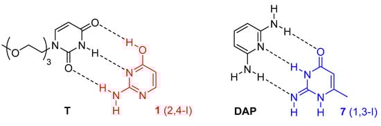 The preparations of compounds 18 and T were described in References [] and [], respectively. Compounds 1, 7, 10, 16 and diaminopyridine (DAP) were purchased from Sigma Aldrich and used without purification. The concentration of all samples for NMR experiments was 10 mM.
