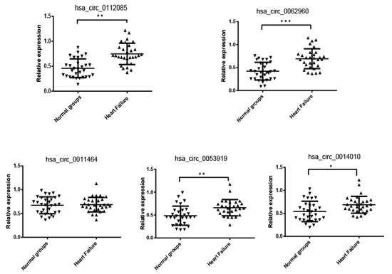 - Sun, Y.; Jiang, X. Circular RNA Expression Profiles in the Plasma from Patients with Heart Failure; GSE134584; GEO. Available online: https://www.ncbi.nlm.nih.gov/geo/query/acc.cgi?acc=GSE134584 (accessed on 20 July 2019).