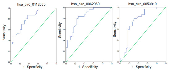 | circRNA | AUC | 95% CI | p-value | Sensitivity | Specificity |