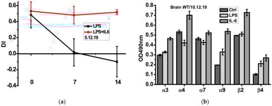 - Lykhmus, O.; Kalashnyk, O.; Uspenska, K.; Skok, M. Positive allosteric modulation of alpha7 nicotinic acetylcholine receptors transiently improves memory but aggravates inflammation in LPS-treated mice. Front. Ageing Neurosci. 2020, in press. [Google Scholar]