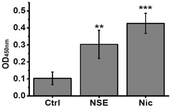 - Both nicotine and NSE stimulate IL-6 production, which favor up-regulation of alternative nAChR subtypes in α7-/- and LPS-injected wild-type mice.