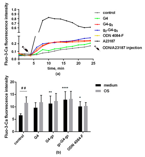 3.3. Effect of ODNs on Cytosol Ca2+ Level in PMNLs