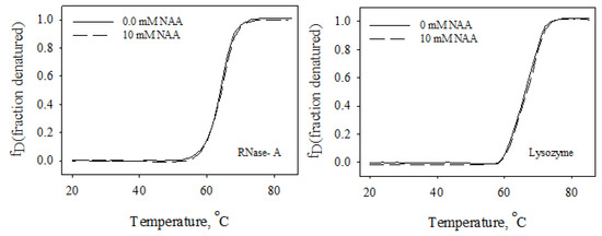 Thermal denaturation profiles of RNase-A and lysozyme at pH 7.0 in the presence of a physiological concentration of NAA.
