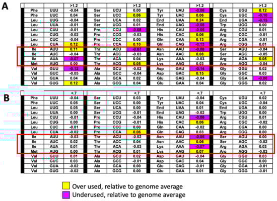 - Doyle, F.; Leonardi, A.; Endres, L.; Tenenbaum, S.A.; Dedon, P.C.; Begley, T.J.; Doyle, F. Gene- and genome-based analysis of significant codon patterns in yeast, rat and mice genomes with the CUT Codon UTilization tool. Methods 2016, 107, 98–109. [Google Scholar] [CrossRef]
