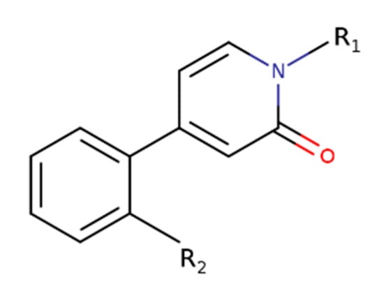 Namely, two new classes of M1-selective PAMs have been developed. Derivatives of heterocyclic carboxamides display various degrees of intrinsic activity and various modulatory profiles of affinity and efficacy of acetylcholine [77]. Similarly, derivatives of 4-phenylpyridin-2-one (Figure 8) display a diverse range of activities, ranging from pure PAMs to pure allosteric agonists [78]. All 4-phenylpyridin-2-one derivatives have retained exquisite selectivity for the M1 receptor.