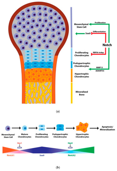 - Kohn, A.; Dong, Y.; Mirando, A.J.; Jesse, A.M.; Honjo, T.; Zuscik, M.J.; O’Keefe, R.J.; Hilton, M.J. Cartilage-specific RBPjkappa-dependent and -independent Notch signals regulate cartilage and bone development. Development 2012, 139, 1198–1212. [Google Scholar] [CrossRef] [PubMed]