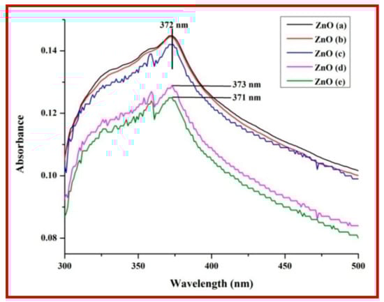 UV-visible spectra of various ZnO samples prepared using different concentrations of C. verum.