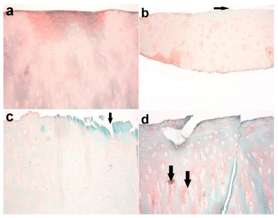48. Pritzker, K.P.; Gay, S.; Jimenez, S.A.; Ostergaard, K.; Pelletier, J.P.; Revell, P.A.; Salter, D.; van den Berg, W.B. Osteoarthritis cartilage histopathology: Grading and staging. Osteoarthr. Cartil. 2006, 14, 13–29. [Google Scholar] [CrossRef]