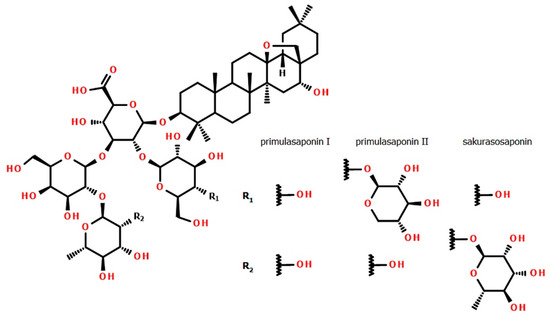 12. Siems, K.; Jaensch, M.; Jakupović, J. Structures of the two saponins isolated from commercially available root extract of Primula sp. Planta Med. 1998, 64, 272–274. [Google Scholar] [CrossRef] [PubMed]