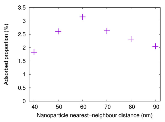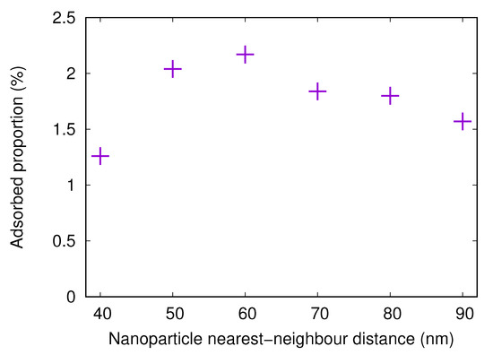 3.3.5. Adsorption Onto Nanostructured Surfaces with Different Nanoparticle Spacing