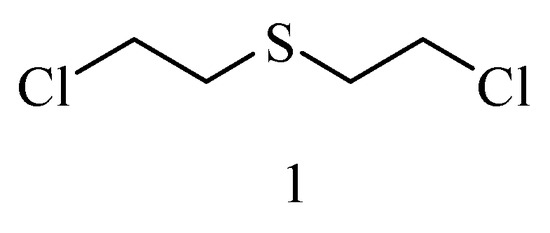 The use of chemical weapons (CW) is quite common throughout history. Over time, the use of incendiaries, darts, spears, and arrows impregnated with poisons from different organisms, animals, and plants, the lethality of substances used for warfare have been dramatically improved. Despite international agreements already in existence by the end of 19th century, these did not inhibit the large-scale use of CW during World War I (WWI) (1914–1918), when millions of casualties were provoked mainly by phosgene, chlorine, and, particularly, sulfur mustard (HD 1) (Figure 1). This compound, due to its physicochemical characteristics, is known as “area denial weapon”, precluding further access to the place where it has been deployed [1].
