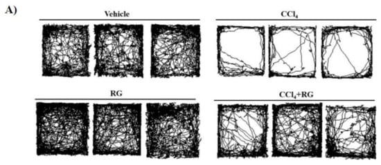 3.2. RG Improves CCl4-Induced Behavioral Damage