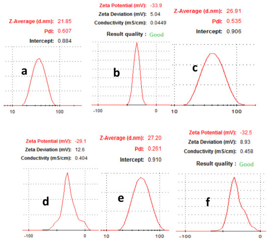 The method description of [72] was adopted. Slight changes were only in the monitoring period, which was 0, 12 and 24 h. The stability was evaluated as soon as the solutions were mixed with the nanoparticles and after incubation at 37 °C.