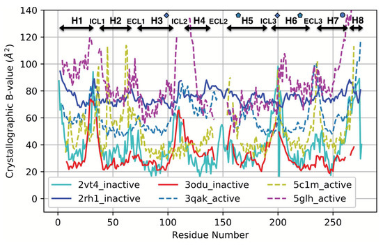 3.4. Comparison with a Crystallographic Measure of Flexibility for Active and Inactive GPCRs