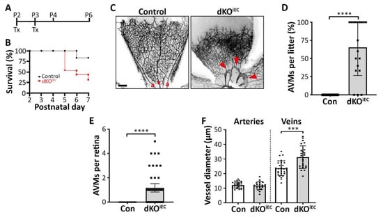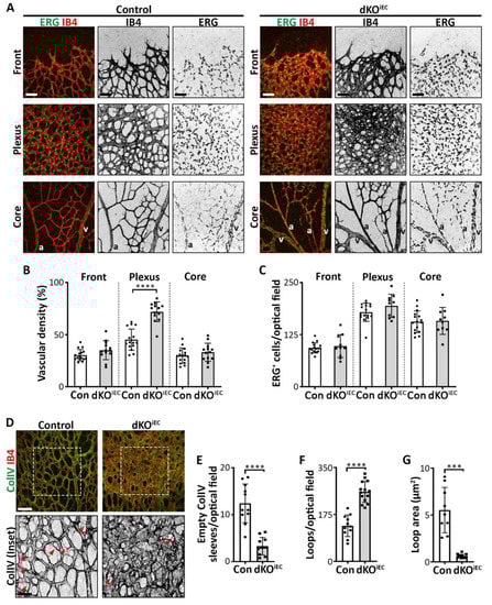 3.4. dKOiEC Mice Show Reduced Vessel Regression and Increased Vascular Loop Formation