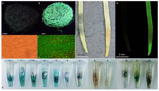 - Jefferson, R.A.; Kavanagh, T.A.; Bevan, M.W. GUS fusions: B-glucuronidase as a sensitive and versatile gene fusion marker in higher plants. Embo J. 1987, 6, 3901–3907. [Google Scholar] [CrossRef] [PubMed]