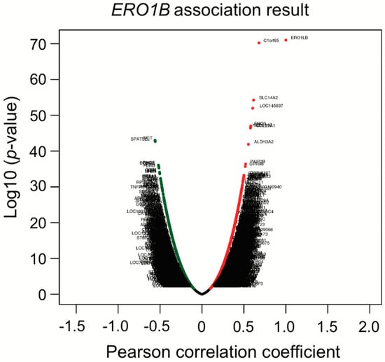Co-expression analysis of ERO1B. Correlation analysis was performed with Pearson correlation test against ERO1B gene.