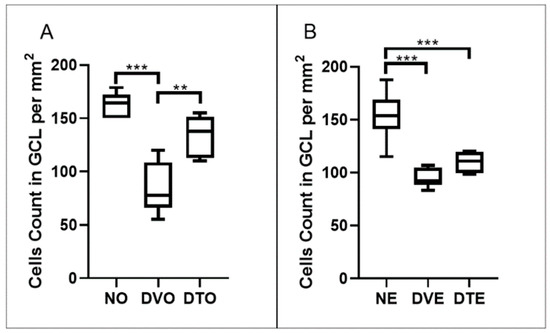 - Ali, S.A.; Zaitone, S.A.; Dessouki, A.A.; Ali, A.A. Pregabalin affords retinal neuroprotection in diabetic rats: Suppression of retinal glutamate, microglia cell expression and apoptotic cell death. Exp. Eye Res. 2019, 184, 78–90. [Google Scholar] [CrossRef]